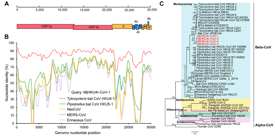 中东呼吸综合征(Middle East respiratory syndrome, MERS)冠状病毒是一种高致病性新发冠状病毒,主要在沙特阿拉伯等中东国家暴发流行。近年来,各国研究人员在亚洲、非洲等多个地区的蝙蝠体内发现了遗传多样的在进化上与MERS冠状病毒相关、基因组结构与其类似的冠状病毒,包括扁颅蝠HKU4冠状病毒、伏翼蝠HKU5冠状病毒以及多种蝙蝠携带的MERS相关冠状病毒等。这些病毒在分类学上和MERS冠状病毒属于同一个病毒亚属,即Merbecovirus亚属,通称为MERS簇冠状病毒。蝙蝠源MERS簇冠状病毒因此也被认为是MERS冠状病毒的原始进化祖先。