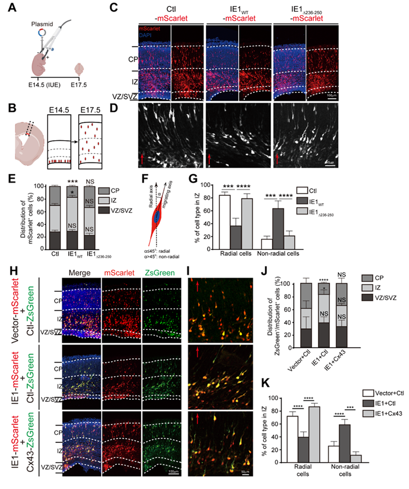 图示:IE1通过下调Cx43影响神经元放射迁移过程