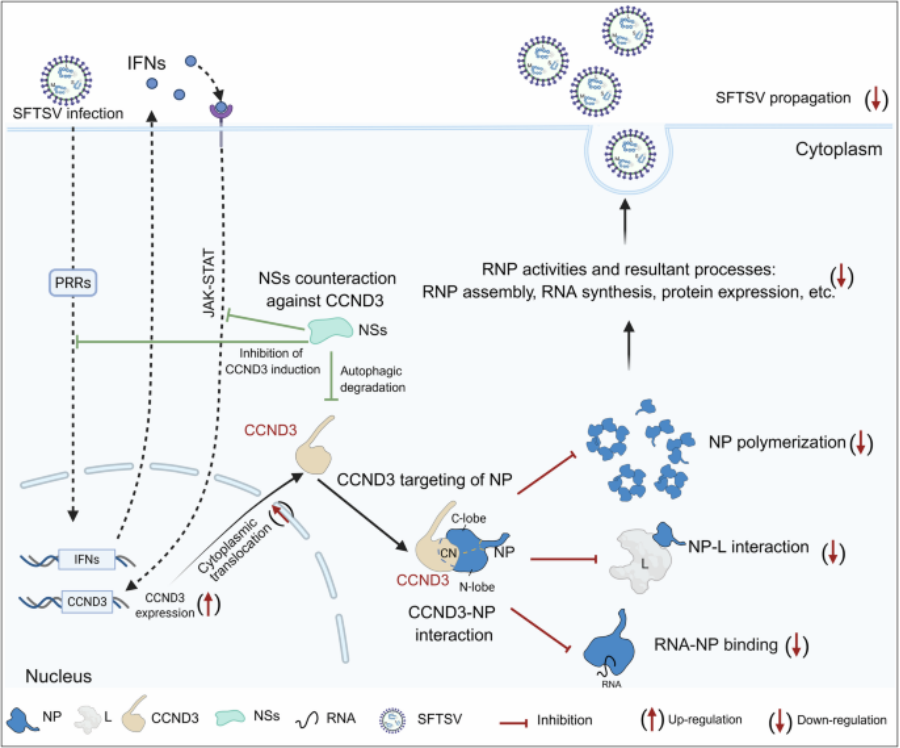 图1. 宿主CCND3与SFTSV互作博弈的功能机制模型。