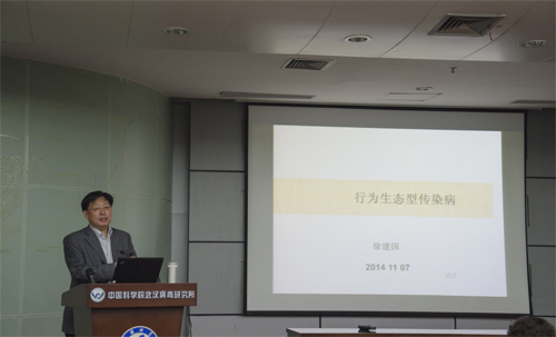 11月7日,应“葛洪?大师”论坛邀请,中国工程院院士徐建国在武汉病毒所为师生们带来了一场题为“行为生态型传染病”的精彩学术报告,报告由武汉病毒所所长陈新文主持。