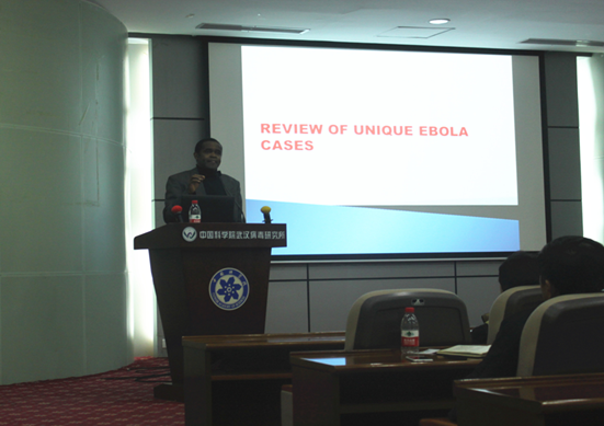 12月23日,应“葛洪·精英论坛”邀请,塞拉利昂卫生部国家实验室服务项目负责人Abdul Kamara副教授在武汉病毒所1号会议室为师生带来了一场题为“National Lab Response to Ebola Outbreak in Sierra Leone”的精彩报告,报告由石正丽研究员主持。