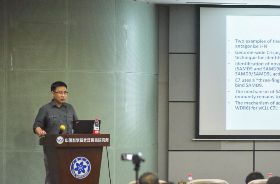 7月26日,应“葛洪·精英论坛”邀请,美国德克萨斯州立大学圣安东尼奥医学中心项焰副教授在武汉病毒研究所1号会议室为师生带来一场题为“Interfering with interferons: immunology lessons learned from poxviruses”的精彩学术报告,报告由关武祥研究员主持。