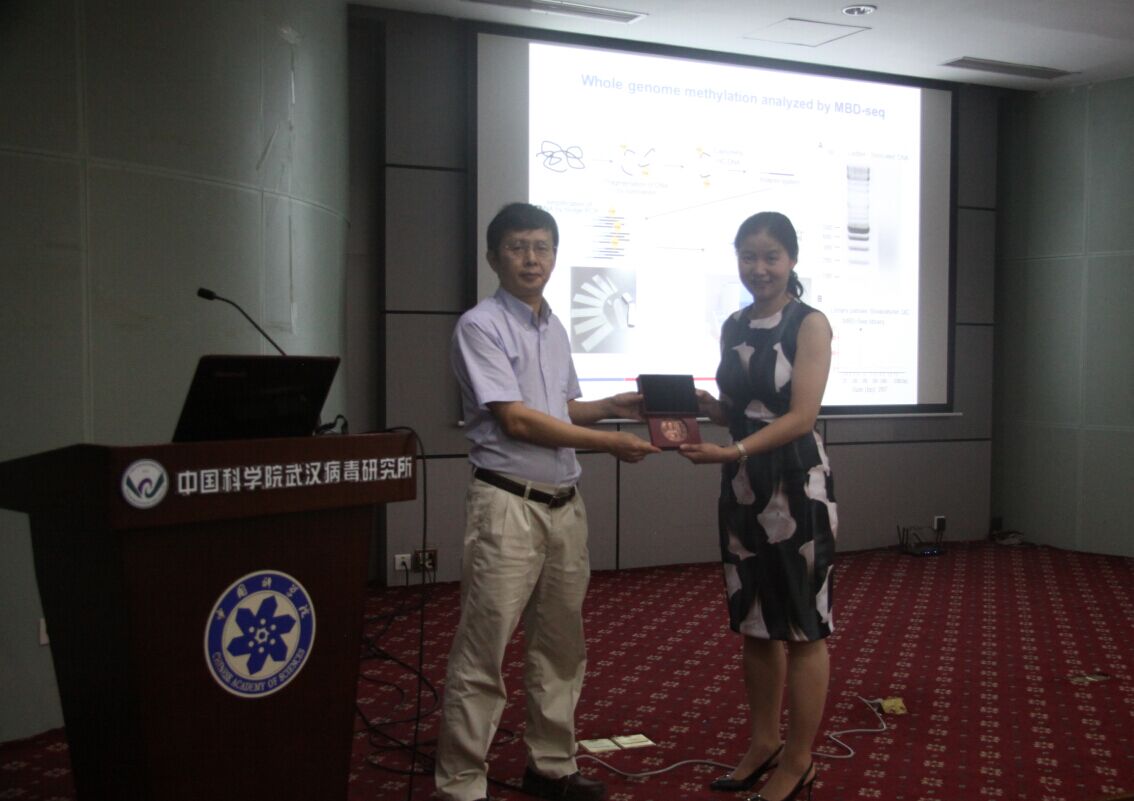 会后,在场师生就多囊肾病相关问题与周霞助理教授进行了热烈的讨论和交流。陈绪林研究员代表病毒所为她颁发了“葛洪论坛”纪念章。