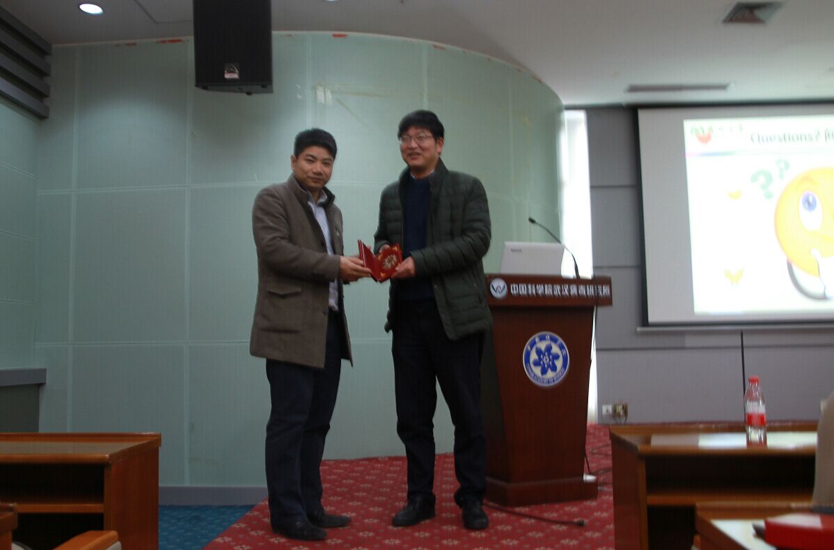 报告会上,朱国强教授为在场师生详细介绍了基于肠杆菌菌毛和鞭毛黏附素研究病原体感染过程中动物病原和动物宿主间的互作,并精确阐述了肠道致病菌和动物机体相互作用的分子致病机制,这为动物病原菌的诊断预防和兽用疫苗的研发应用提供了线索。会后,在场师生就肠毒性大肠埃希杆菌病原毒力因子等相关问题与朱国强教授进行了热烈的讨论和交流。关武祥研究员代表病毒所为他颁发了“葛洪论坛”纪念章。