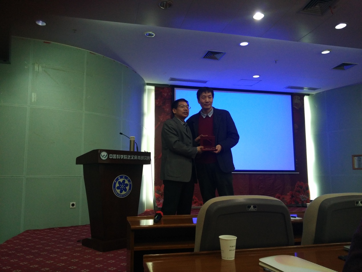 报告会上,宋保亮教授介绍了其团队两个主要研究方向:一是小肠胆固醇吸收的分子途径。在该项研究中,他们发现了NPC1L1这个蛋白在介导小肠胆固醇吸收中起着非常重要的作用;另一个方向是细胞内胆固醇动态运输的分子机制。在研究中,他们发现溶酶体上的Syt7与过氧化物酶体上的PI(4,5)P2相结合,从而介导了溶酶体中的胆固醇向过氧化物酶体的运输。会后,在场师生就胆固醇的运输以及胆固醇代谢与相关疾病等问题与宋保亮教授进行了热烈的讨论和交流。陈新文所长代表病毒所为他颁发了“葛洪论坛”纪念章。