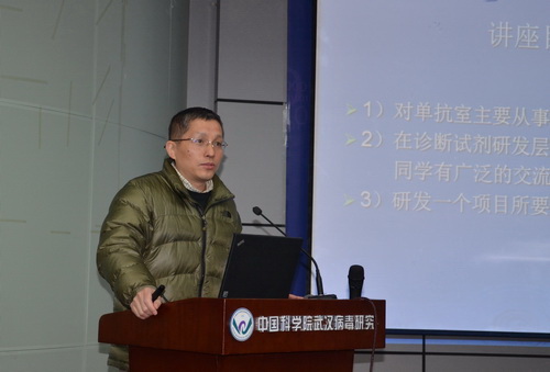 严兵研究员从第四代艾滋酶联诊断试剂的特点入手,深入浅出地为我们讲述了第四代艾滋酶联诊断试剂的作用机制、研发流程,较第三代艾滋诊断试剂的优缺点,以及它推广使用时遇到的种种困难挑战。胡杨波副研究员则详细为我们讲述了他在结合分枝杆菌RNA聚合酶与转录调控机制方面的最新研究进展及成果。