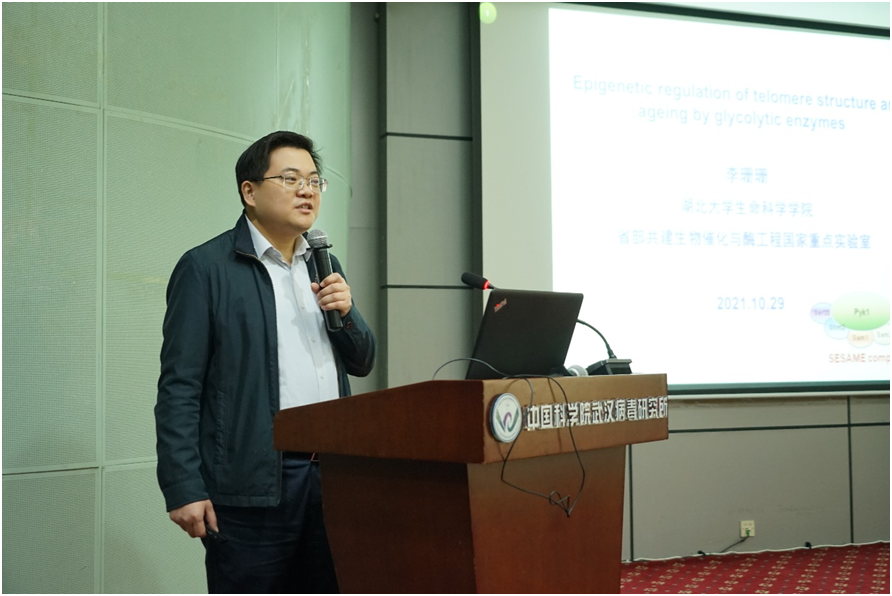 10月29日上午,应“葛洪论坛”邀请,湖北大学李珊珊教授在武汉病毒所1号会议室为全所师生带来了一场题为“Epigenetic regulation of telomere structure and ageing by glycolytic enzymes”的精彩学术报告。报告由武汉病毒所彭珂研究员主持。