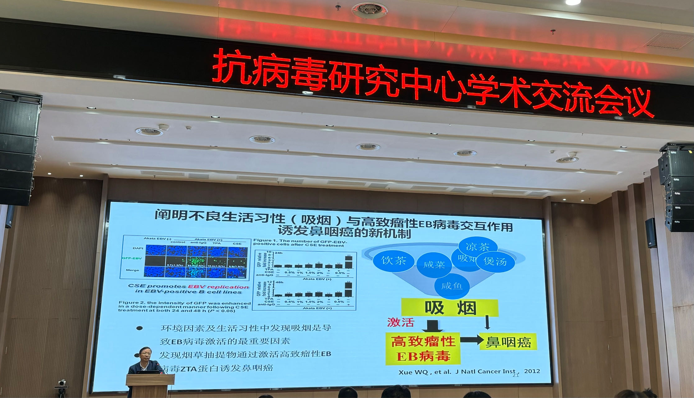 曾木圣教授长期专注于EB病毒致癌机制与干预研究。他在会议上介绍了鼻咽癌来源EB病毒亚型序列特征及表达特征,发现鼻咽癌相关EB病毒亚型GD1及GD2具有更强的致瘤能力,证明了烟草提取物可通过激活高致瘤EB病毒ZTA蛋白从而诱发鼻咽癌,表明吸烟是导致EB病毒激活的重要因素。其团队通过建立EB病毒高效感染的体外上皮细胞模型,首次鉴定出EB病毒进入上皮细胞的受体:NMHC-IIA、NRP1和EphA2,并阐明了其作用机制:NMHC-IIA介导EB病毒对上皮细胞的粘附,NRP1及其通路介导EB病毒进入上皮细胞,EphA2介导病毒与细胞膜融合,还能抑制炎症体激活从而促进病毒感染。关键受体的鉴定为阻断EB病毒感染预防鼻咽癌提供了科学依据。