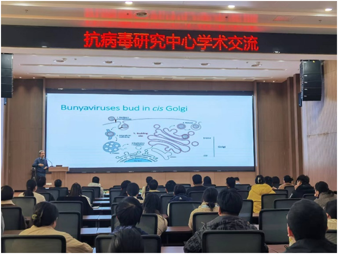 12月4日,中国科学院武汉病毒研究所抗病毒研究中心召开学术交流会议,依托“葛洪论坛”,抗病毒研究中心邀请法国里昂大学教授Pierre-Yves Lozach带来了题为“Glucosylceramide in bunyavirus particles is essential for virus binding to host cells”的精彩学术报告。会议由中心主任彭珂研究员主持。