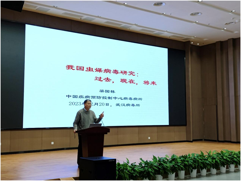 梁国栋长期从事我国吸血昆虫携带病毒的调查研究,在我国自然界采集的蚊虫、蜱虫、蠓虫和白蛉等吸血昆虫和宿主动物标本中获得数十种可以传代培养的病毒分离物,并对在我国分离的乙型脑炎病毒、西尼罗病毒和寨卡病毒等病毒的人畜动物感染进行了深入研究。此次交流会,梁国栋系统介绍了虫媒病毒的传播媒介、种类、治疗和预防方法;比较了中国和美国、俄罗斯等国家虫媒病毒的研究历史;总结了中国虫媒病毒研究的历史、当前状态和未来方向,并对虫媒病毒研究的未来提出了期待和展望。