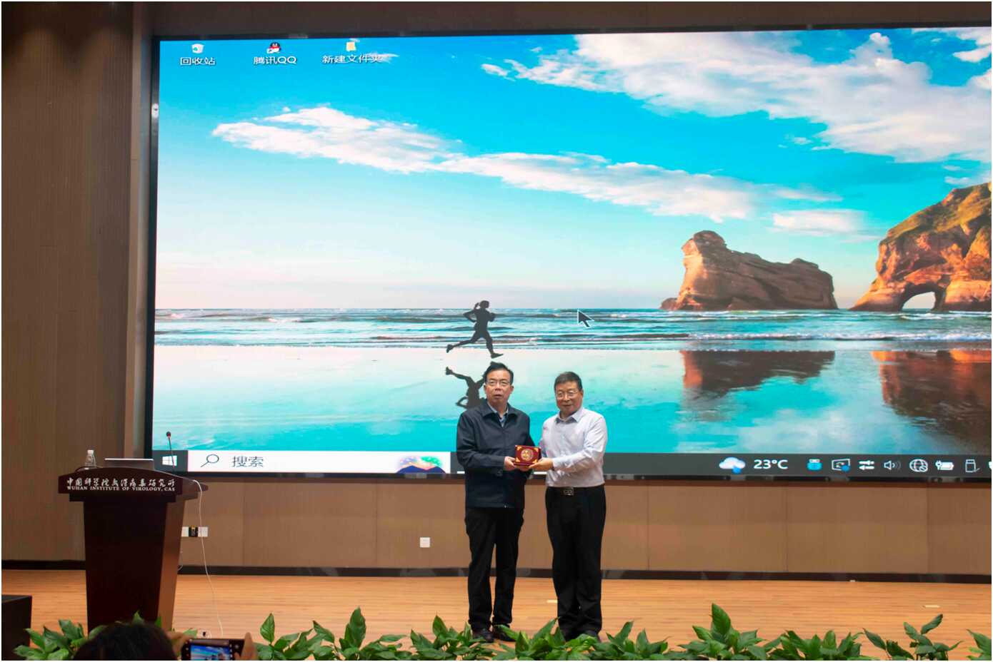 在交流讨论环节中,参会师生就药物设计的思路及发展储备药物以应对新发突发传染病等问题与常俊标教授展开了深入的讨论。最后,武汉病毒所党委书记、副所长肖庚富研究员代表武汉病毒所向常俊标教授颁发了“葛洪论坛”纪念章。