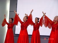 最后,我所离退休人员、职工和研究生代表用自编自导的舞蹈《祝福祖国》、《掀起你的盖头来》、歌曲《映山红》、小提琴独奏等节目,向与会人员作了精彩演出,为党的85岁生日献上了一份厚礼。