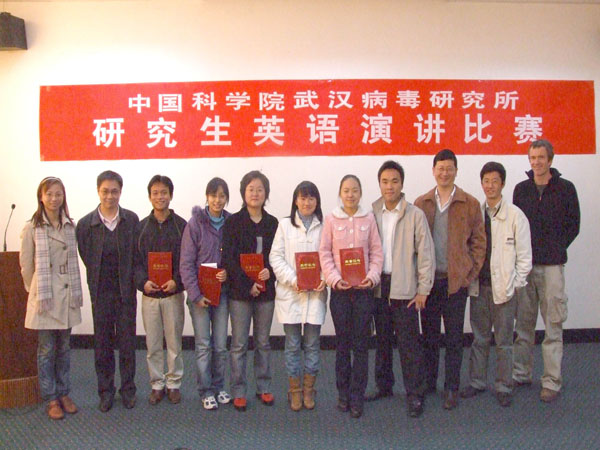 11月23日,病毒所研究生部组织举行了主题为“Science Life and Faith”的研究生英语演讲比赛。此次比赛特邀本所陈士云、鄢慧民、周宁一和Simon四位教授为评委嘉宾,上届研究生英语演讲比赛冠军得主邓湘为嘉宾主持人。参赛选手共15名,主要为本所2007级博士、硕士研究生。