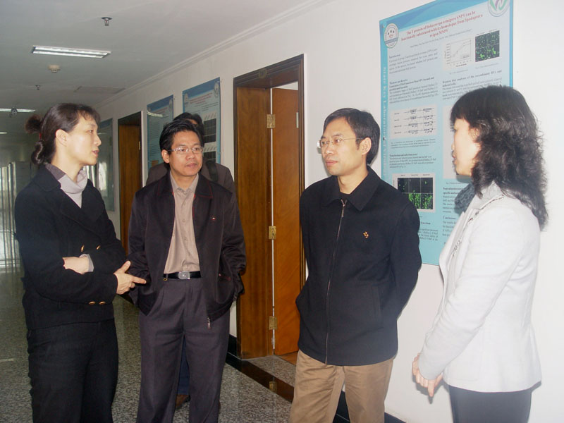 张局长先后考察了分子病毒学、生物防治、分析生物技术等实验室,每到一个学科组,他都与学科组长进行充分的交流与沟通,不仅仔细了解各学科组的研究方向,详细询问科研工作进展情况,还与大家就各学科组的研究重点、项目的申请、经费的争取等问题做了深入的探讨。