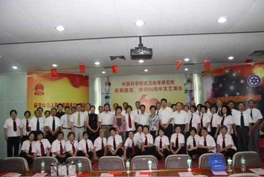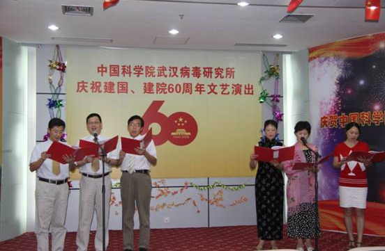 9月23日,武汉病毒所实验大楼一号会议室内歌声激昂、舞蹈翩翩、欢声笑语、掌声阵阵,研究所“庆祝建国建院60周年”文艺演出在这里隆重举行。
