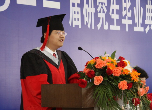 武汉分院党组书记陈平平主持此次毕业典礼。礼堂内,2011届毕业研究生们身着整齐庄严的学位服齐聚一堂,接受导师和家长的祝福。导师代表和毕业生代表分别上台讲话。我所2008级博士研究生门冬作为毕业生代表做了演讲,他表达了对这个播撒了多年青春汗水的母校的喜爱与不舍,并且也为今后的人生道路找到了奋斗的目标。