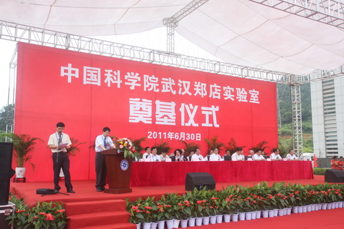 6月30日上午,卫生部部长陈竺、中国科学院院长白春礼、湖北省委书记李鸿忠、省长王国生、法国驻华大使白林(Sylvie-Agnès BERMANN)、中法新发传染病防治合作指导委员会法方主席阿兰·梅里埃等中、法代表200余人共聚武汉,出席中国科学院武汉病毒研究所郑店实验室奠基仪式。世界卫生组织总干事陈冯富珍发来了贺信。奠基仪式由中国科学院副院长李家洋主持。
