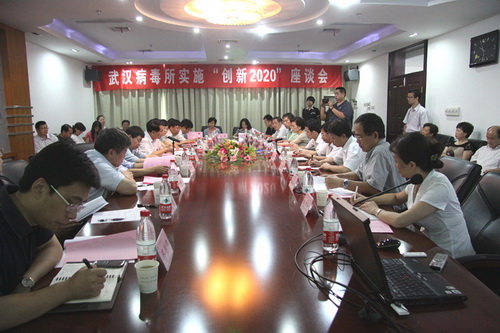 座谈会上,白春礼院长、李家洋副院长听取了武汉病毒所“创新2020”战略规划的汇报。该所客座研究员王林发博士、研究员危宏平、研究员周宁一分别就该所“三个重大突破”—新发传染病研究中心的战略布局,病毒纳米器件的研究,农业、环境微生物与生态保护作了专题汇报。随后,该所党委书记、副所长袁志明就病毒所研究所生物安全平台建设、郑店园区总体规划、“十二五”基建规划、整体搬迁方案以及存在的问题和建议等做了汇报。
