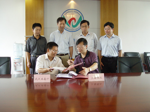 9月5日,武汉病毒所与上海博沃生物科技有限公司合资共建协议的签约仪式举行,武汉病毒所所长陈新文及博沃公司总裁吴克分别代表双方,签订了共同发起成立合资公司的合作协议。副所长杨荣阁、所长助理、科研计划处处长肖庚富等出席签约仪式。