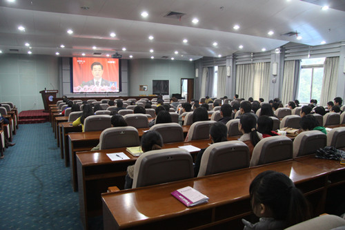十八大开幕前,武汉病毒所党委积极组织各党支部主动地通过网络、报纸、电视等媒体收集党十八大的相关信息,密切关注十八大动态。在收看直播过程中,整个会场秩序井然,大家认真聆听胡锦涛总书记的工作报告,认真做好记录,现场气氛热烈,不断爆发出阵阵热烈的掌声。