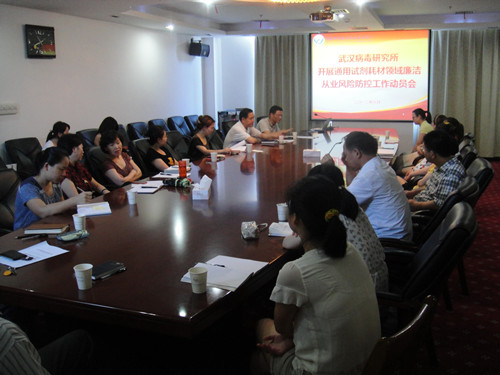 6月18日,武汉病毒研究所召开了廉洁从业风险防控工作会议。这是我所在完成基建工程项目管理廉洁从业风险防控试点工作后,继续深入推进廉洁从业风险防控工作的一次重要会议,重点就开展通用试剂耗材领域的风险防控工作进行动员和部署。所党委副书记、纪委书记余平凡、所纪委成员、职能管理部门负责人、党支部书记、课题组代表及相关工作人员等参加了会议。