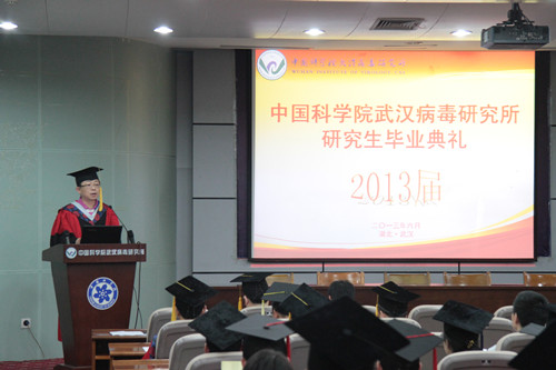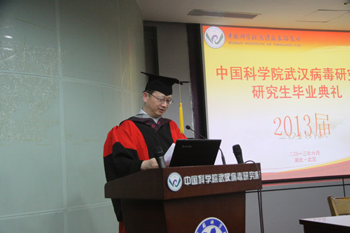 6月20日下午,武汉病毒研究所2013届研究生毕业典礼隆重举行。所长陈新文、副所长唐宏、研究生导师代表及2013届全体毕业生参加了典礼。这是武汉病毒研究所首次举办的研究生毕业典礼,唐宏副所长主持会议。