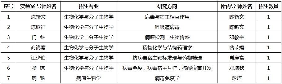 1.武汉病毒研究所研究生处