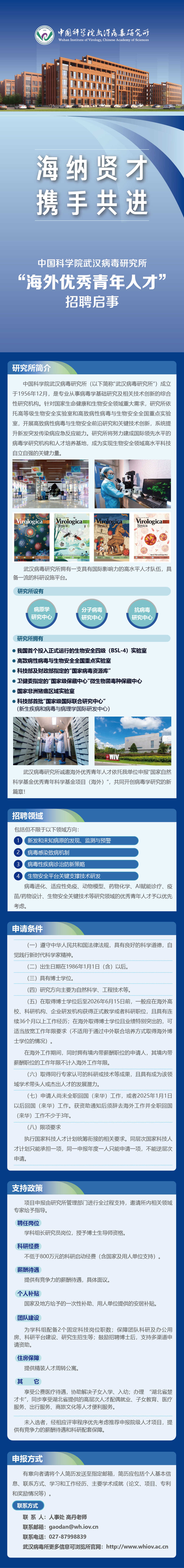 中国科学院武汉病毒研究所“海外优秀青年人才”招聘启事